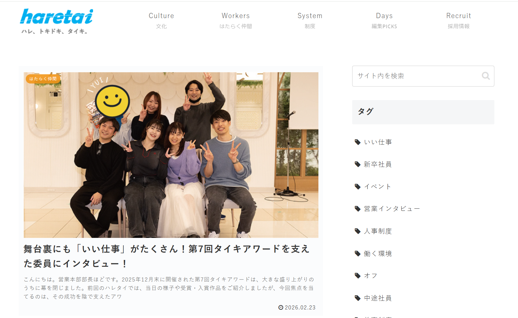 社内で働く人がどんな想いで仕事をしているのか、活躍している人はどんな人なのかなど、働く人の想いや価値観が伝わるコンテンツとなっています。実際にハレタイをみて入社をした社員も多数おり、